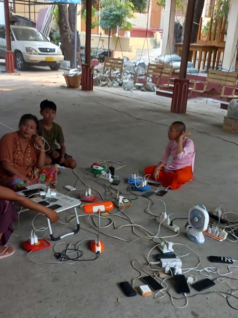 With dana in hand, we have set out to do do what we can. Of course we have been most deeply concerned about the welfare of the many people we know well in Sagaing, especially the nuns we have supported for many years. At first information was slow to come and patchy. First there was imagination, then rumor – but slowly we received more accurate information through messaging apps and phone calls.